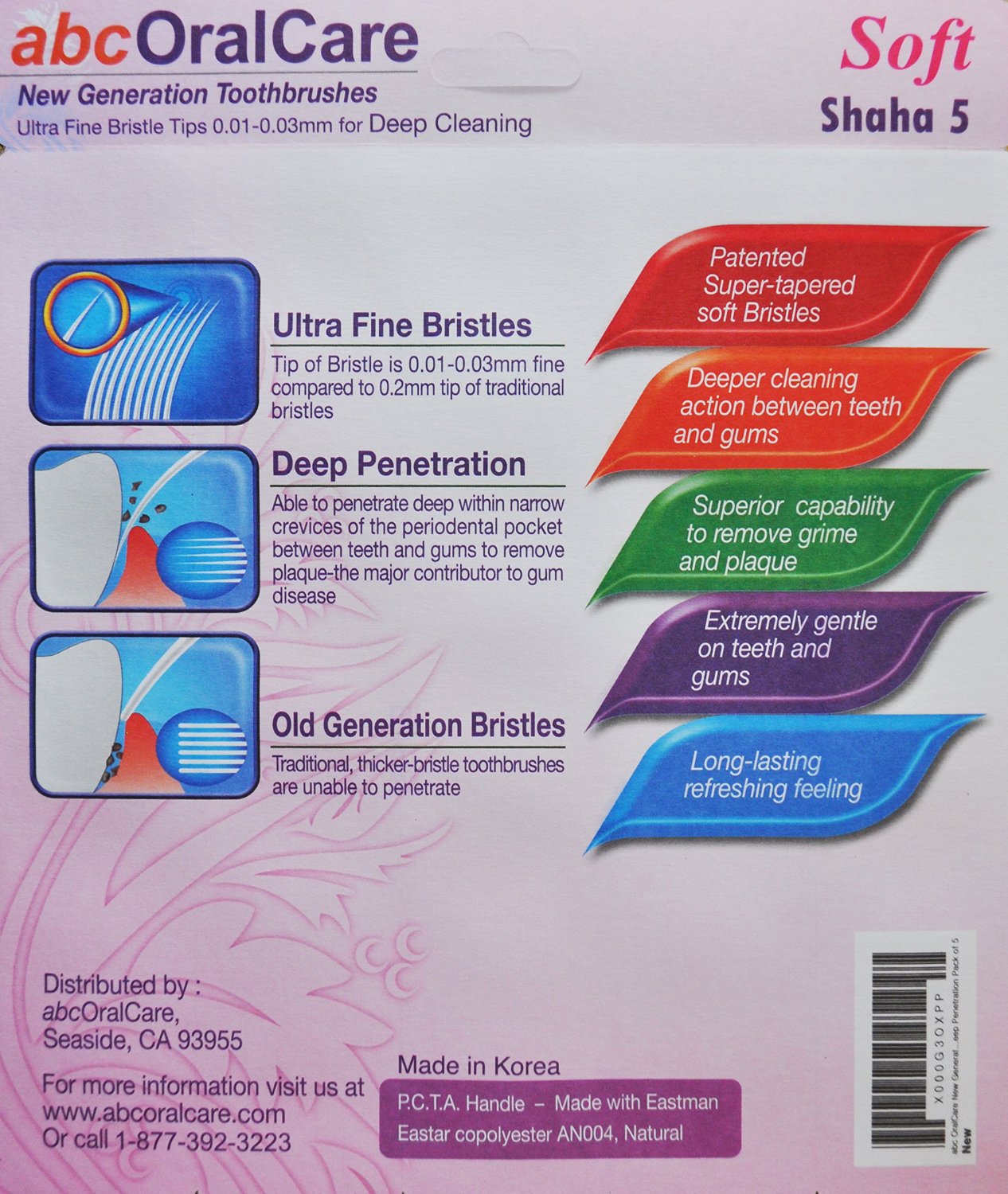Our toothbrushes have tapered fine bristles that penetrate deep within narrow crevices of the periodontal pocket between teeth and gums to remove plaque. During the first week you may experience some minor discomfort since the fine bristles will clean in areas that haven’t been touched before. This is similar to the feeling of flossing for the first time. However, this minor discomfort will soon disappear, and you will have healthier teeth and gums, and your mouth will feel fresh all day.