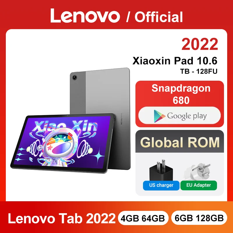 Global ROM Lenovo Tablet 2022 or Xiaoxin Pad 2022 10.6 Inch 2K LCD Screen Tablet Android 12 64GB Snapdragon 680 Octa Core 7700mA