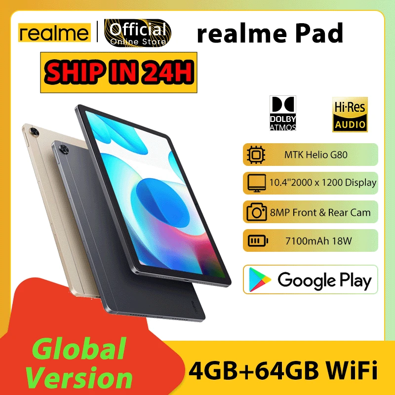 Ship in 24h realme Pad Global Version realme Android Tablet Helio G80 10.4” WUXGA+ Display 8MP Wide-angle Cam 7100mAh Battery