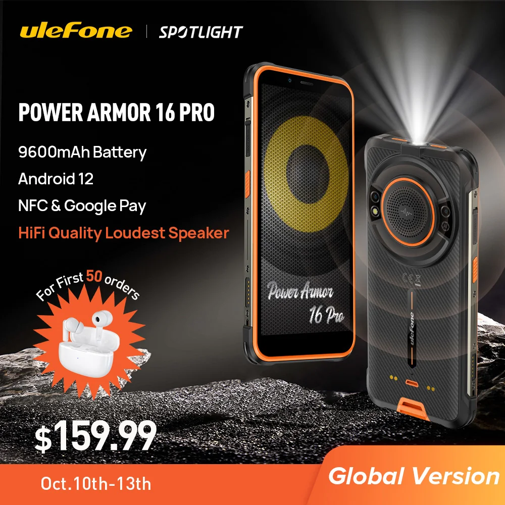 World Premiere Ulefone Power Armor 16 Pro Rugged Waterproof Smartphone 9600mAh Android 12 NFC Rugged Phone 2.4G/5G WiFi Global
