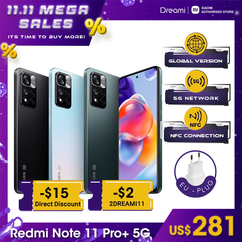 Global Version Xiaomi Redmi Note 11 Pro+ 5G – MediaTek Dimensity 920 120Hz AMOLED 108MP 5000mAh 67W Turbo Charging Smartphone