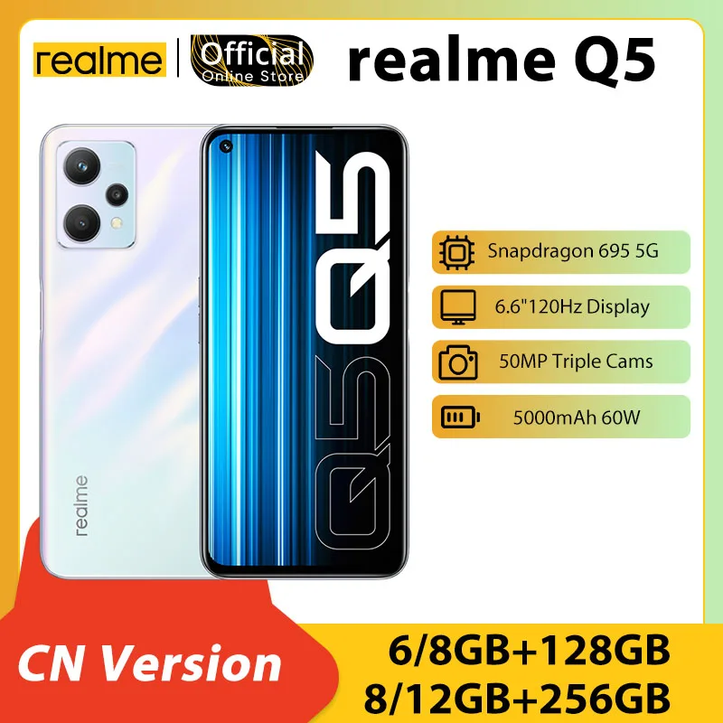 realme Q5 Snapdragon 695 5G Smartphone 6GB/8GB 128GB/256GB 6.6” 120Hz FHD+ Display 50MP Triple Cameras 5000mAh 60W