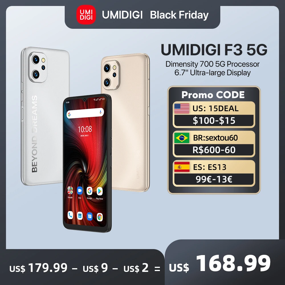 [In Stock] UMIDIGI F3 5G Phone, Android 12 Smartphone, Dimensity 700, 6.7″ Display 8GB 128GB, 48MP Triple Camera, 5150mAh