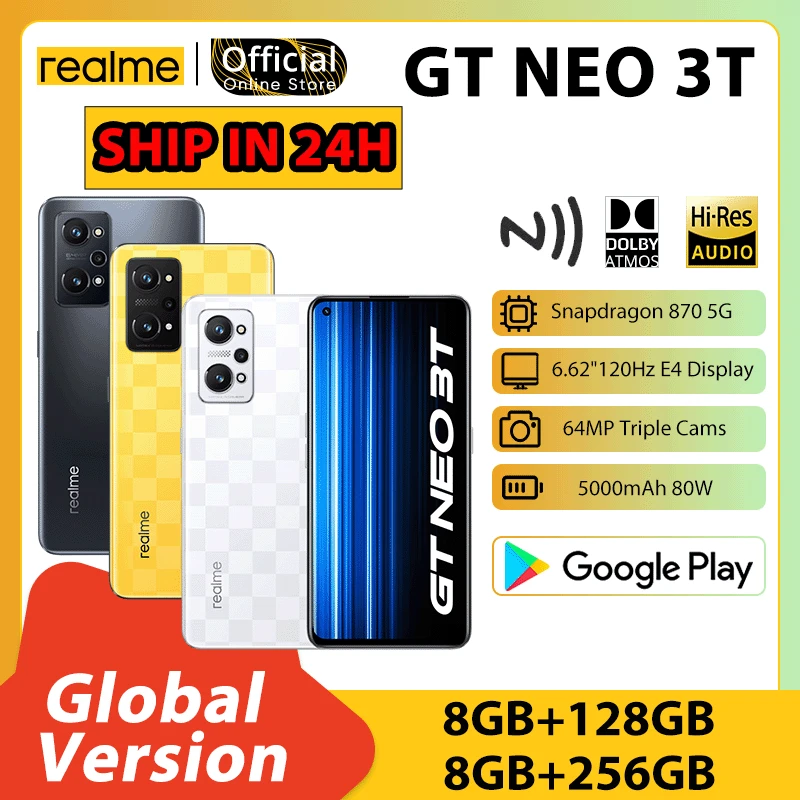 realme GT NEO 3T Global Version Snapdragon 870 5G 80W SuperDart charging NFC 6.62″ 120HZ AMOLED 64MP Primary Camera Smartphone