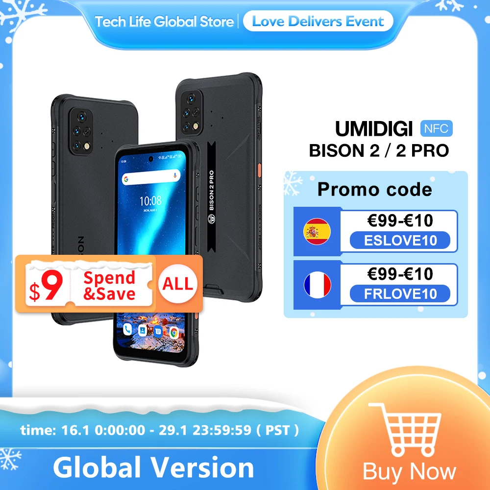 Original UMIDIGI Bison 2 Phone Bison 2 Pro Rugged Android Smartphone 128GB 256GB Helio P90 6.5” FHD+ 48MP Triple Camera 6150mAh