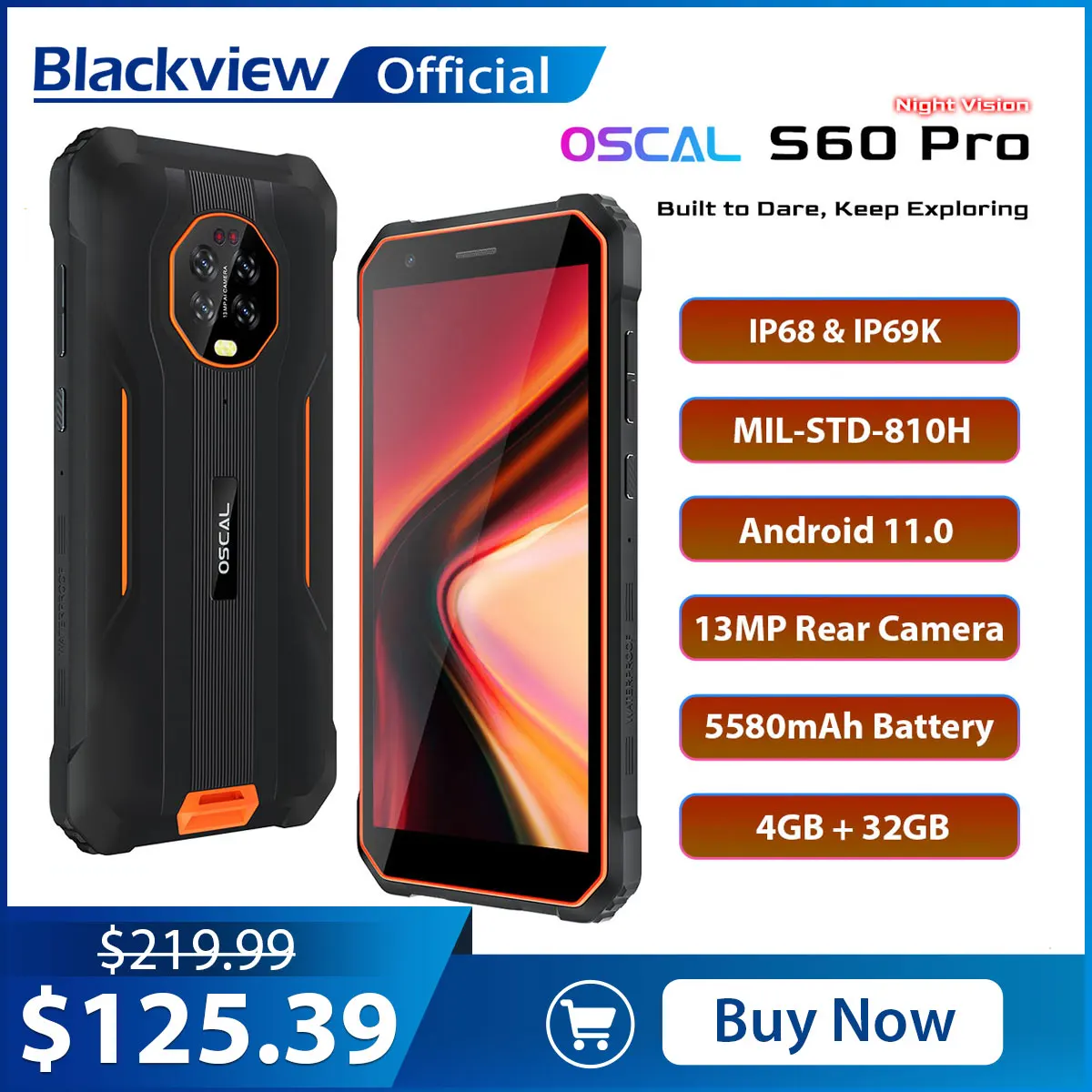 Blackview Oscal S60 Pro Smartphone Night Vision IP68 Waterproof Rugged 5.7″ Moblie Phone 4GB+32GB 5580mAh Android 11 Cell Phone