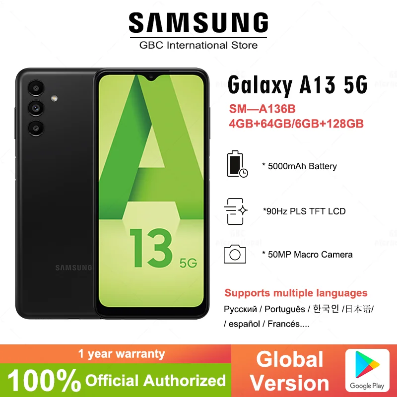 Global Version Samsung Galaxy A13 5G Smartphone 4GB 64GB/6GB 128GB 90Hz screen Display 5000mAh octa-core 50MP the main sensor