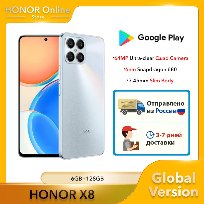 HONOR X8 Smartphone Android 11 Mobile Phone 6nm Snapdragon 680 22.5W SuperCharge 90Hz 2388*1080PX Cellphone